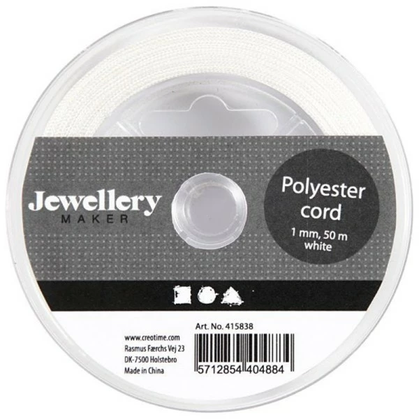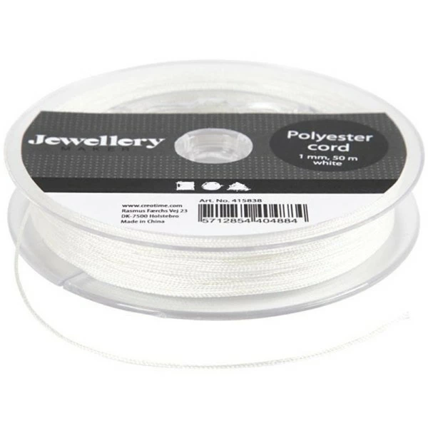 Ce fil polyester 1mm coloris Blanc de 50 mètres sera parfait pour toutes vos créations de bijoux fantaisies !