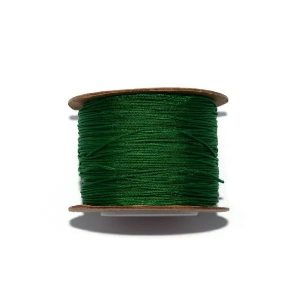 Fil nylon tressé aussi appelé « fil de jade ». Ce fil est très fin (0,8mm), il est utilisé dans toutes sortes de créations de bijouxmacramé, enfilage de perles (même les plus petites) renforcement des extrémités pour tissage de perles sur métier à tisser, bracelet shamballa, noeud coulissant etc.
