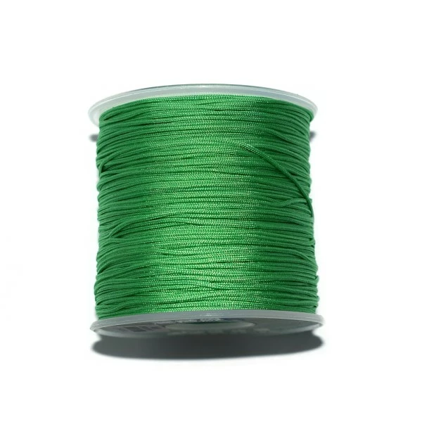 Fil nylon tressé aussi appelé « fil de jade ». Ce fil est très fin (0,8mm), il est utilisé dans toutes sortes de créations de bijouxmacramé, enfilage de perles (même les plus petites) renforcement des extrémités pour tissage de perles sur métier à tisser, bracelet shamballa, noeud coulissant etc.