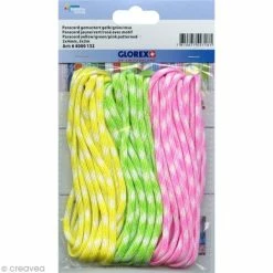 Le Paracord (ou paracorde) est un accessoire qui permet de réaliser des tressages en toute simplicité. En effet, grâce à cet assortiment de 3 fils Jaune, vert et rose (3 x 3) m (épaisseur de 2 x 4 mm), la création de bracelets et de porte-clés deviendra facile et ludique ! Ces paracordes (cordelettes en nylon) pourront également être utilisées pour fabriquer des colliers pour animaux, des manches de couteaux, des dragonnes, des ceintures et même pour remplacer des lacets de chaussures ! Même si les motifs présents sur vos paracordes (losanges blancs) apporteront de la fantaisie à vos créations, pensez à mixer les couleurs pour encore plus d’originalité !