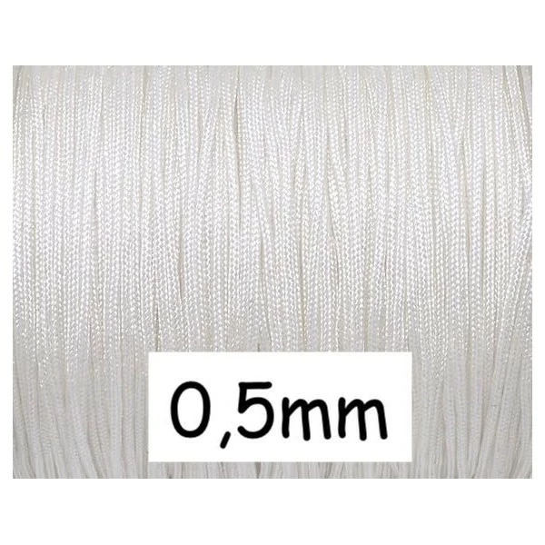 10m Fil de jade 0,5mm blanc – idéal noeud coulissantMatièrenylon tresséCouleurblancDiamètre0,5mm +/- 0,1mm Les 10m de cordon synthétique 0,5mm tressé sont envoyés d’un seul tenant. Le prix indiqué est pour 10m de fil de jade blanc pas cherLe fil de jade est un fil synthétique en nylon. Il est très résistant et ne se décolore pas sous l’eau ou si on le porte en permanence. C’est un fil qui permet la réalisation de noeud coulissant. Il peut se bruler a ses extrémités pour des finitions parfaites. Il existe en de nombreux coloris, il a une finition brillante satiné.Ce fil convient parfaitement pour la réalisation de bracelet wrap, shamballa, le tressage , ces utilisations sont diverses et multiples ….Ce fil peut être utilisé seul ou pour du macramé aussi. Il est très agréable à travailler et permet de créer des bijoux fins, raffinés et très élégant. NBLa couleur peut être légèrement différente de la photo cause écran, lumière, reflet différente selon les ordinateurs