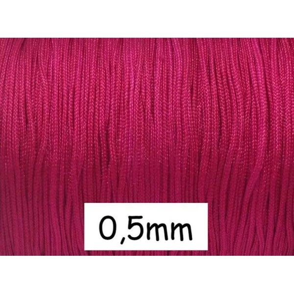 10m Fil de jade fin 0,5mm rose fuchsia – idéal noeud coulissant – WRAP – SHAMBALLAMatièrenylon tresséCouleurrose fuchsia brillant satinéDiamètre0,5mm +/- 0,1mm Les 10m sont envoyés d’un seul tenant. Le prix indiqué est pour 10m de fil nylon fin 0,5mm rose fuchsiaLe fil de jade est un fil synthétique en nylon. Ce fil est très résistant et ne se décolore pas sous l’eau ou si on le porte en permanence. C’est un fil qui permet la réalisation de noeud coulissant. Il peut se bruler a ses extrémités pour des finitions parfaites. Ce fil fin existe en de nombreux coloris, il a une finition brillante satiné.Ce fil très fin convient parfaitement pour la création de bracelet wrap, shamballa, le tressage réalisé avec de petites perles ou avec des perles ayant un petit trou, ces utilisations sont diverses et multiples ….Ce fil peut être utilisé seul ou pour du macramé aussi. Il est très agréable à travailler et permet de créer des bijoux fins, raffinés et très élégant. Il peut être utilisé pour des bracelets Shamballa fin ainsi que des bracelets Wrap.NBLa couleur peut être légèrement différente de la photo cause écran, lumière, reflet différente selon les ordinateurs