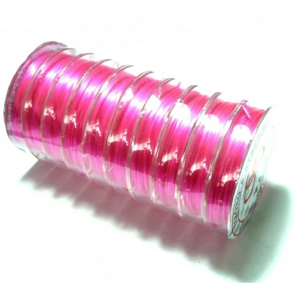 10 Bobines d’environ 10m de Fil ELASTIQUE CRISTAL 0.8mm Fuschia HN00207 Chaque bobine fait 10 mètres de long et 0.8mm de diamètre D’autres coloris et diamètres de fils élastiques sont disponibles dans notre boutique.