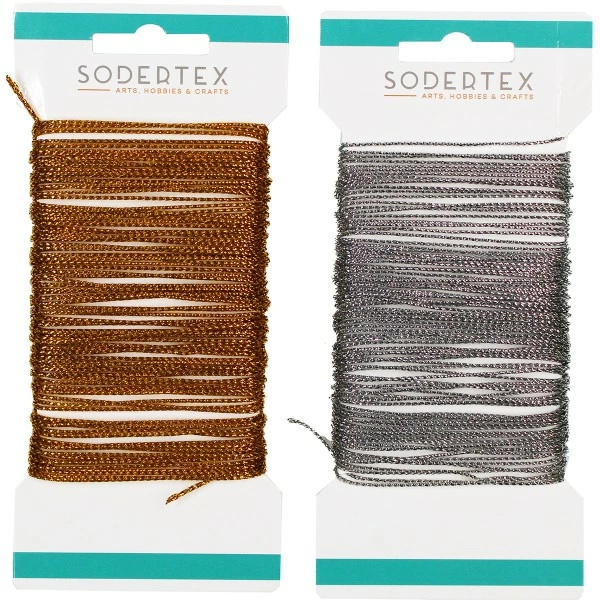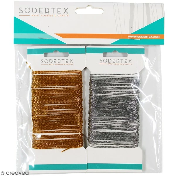 Ce lot de fils en coton est composé de 2 bobines de 10 m coloris argenté et doré. Ces cordons de 1 mm sont légèrement brillants et vous serviront pour toutes vos créations de bijoux fantaisies !